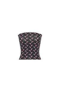 Sleeveless second skin cropped bustier top Product Detail - Elastic band with anti-slip tape inside - All over moon printed Composition and Traceability Product details page relating to environmental qualities or characteristics WTS011A_CJER0001_BK90_BLACK/PINK Composition: 84% Polyamide, 16% Elastane Product care: MACHINE WASH 30° Traceability: Weaving/Dyeing: Italy Manufacturing: Portugal