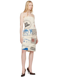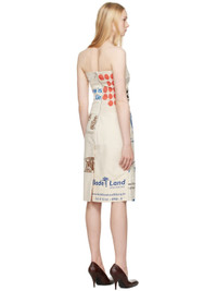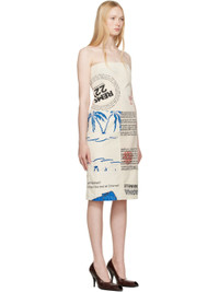 Upcycled cotton hopsack midi dress. Graphics and text printed throughout. · Straight neck · Stretch jersey gusset at side seams · Zip closure at back · Central vent at back hem · Full cotton poplin lining Each item is unique. Please note that graphics may vary. Supplier color: Regenerated tote bags ecru Body: 100% cotton. Trim: 78% recycled polyamide, 22% elastane. Lining: 100% cotton. Made in France 251020F054000