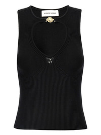 open-knit tank top Highlights - Black - Clasp fastening - Cut-out detailing - Ribbed detailing - Sleeveless Imported Composition Viscose 70%, Polyamide 30%