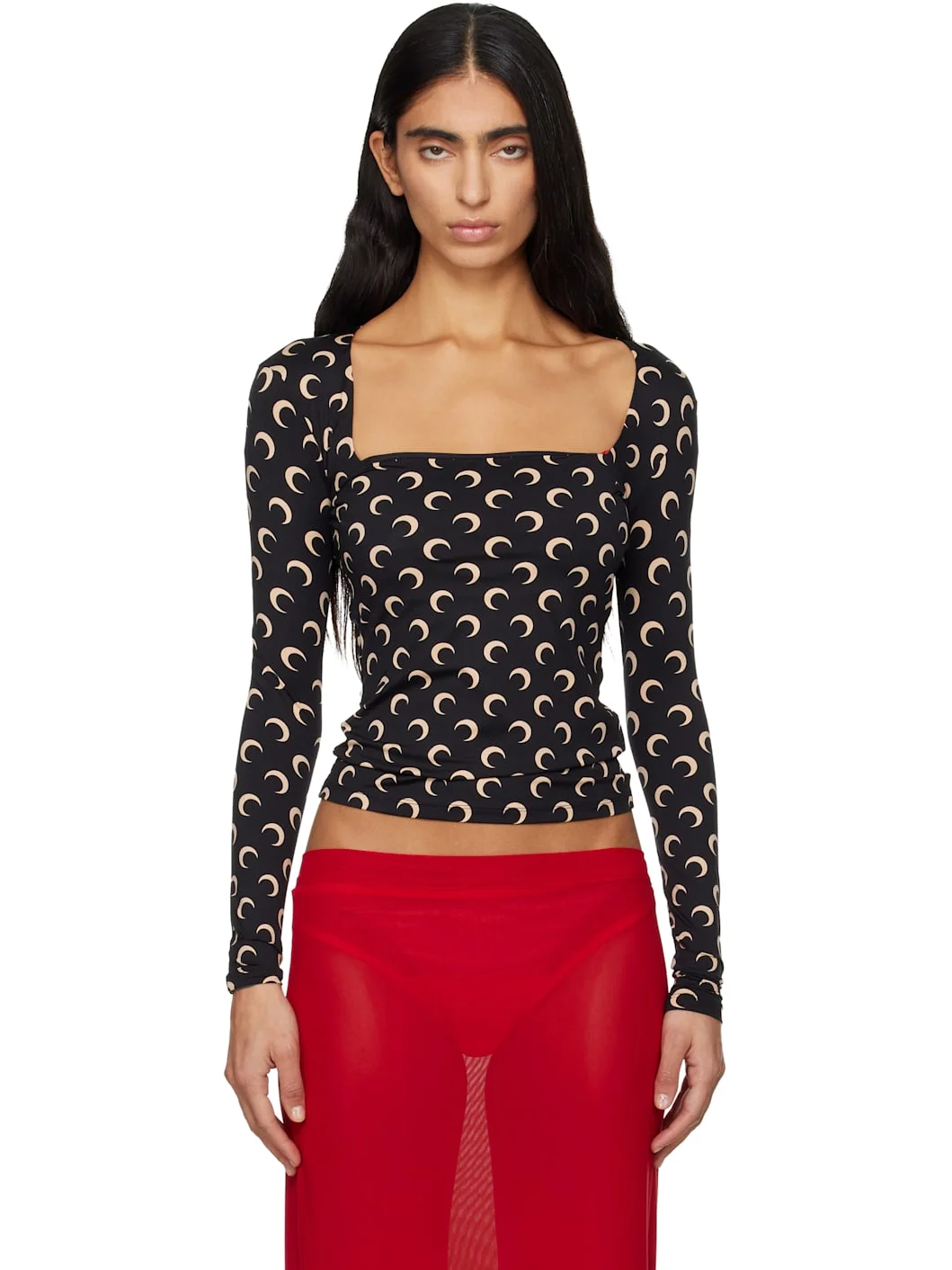 Stretch recycled nylon jersey T-shirt. · Logo pattern printed throughout · Square neck Supplier color: Inverse tan 88% recycled polyamide, 12% recycled elastane. Made in Portugal 252020F110055