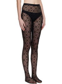 Sheer stretch nylon mesh tights. · Flocked logo pattern throughout · Elasticized waistband · Logo pattern and scalloped edge at waistband · Logo flag at front waist Supplier color: Black 86% nylon, 14% elastane. Made in France 252020F076000