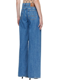 Non-stretch denim jeans. · Fading throughout · Flared leg · High-rise · Belt loops · Five-pocket styling · Zip fly · Logo patch at back waistband · Contrast stitching in tan Supplier color: Light blue 100% cotton. Made in Turkey 252020F069006