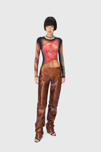 - Signature Moon airbrushed all over leather - Zip closure with signature Moon puller in rear - Darted back - Signature Moon jacquard lining Materials Moon Airbrushed Leather Premium Nappa leather which is made in Italy, and known for its soft and supple qualities, making it ideal in the summer months. During the embellishment stage, garments are airbrushed to reveal our All Over Moon Gradient print, which is set off by the richly dramatic camel, lilac and red palette of the garments. The intensity of the shading varies across each piece, creating a striking chiaroscuro effect that adds depth, dimension and a shimmering, mercurial quality that’s very much in keeping with the house’s lunar codes. Main Material: 100% Sheep Leather Lining: 100% Viscose
