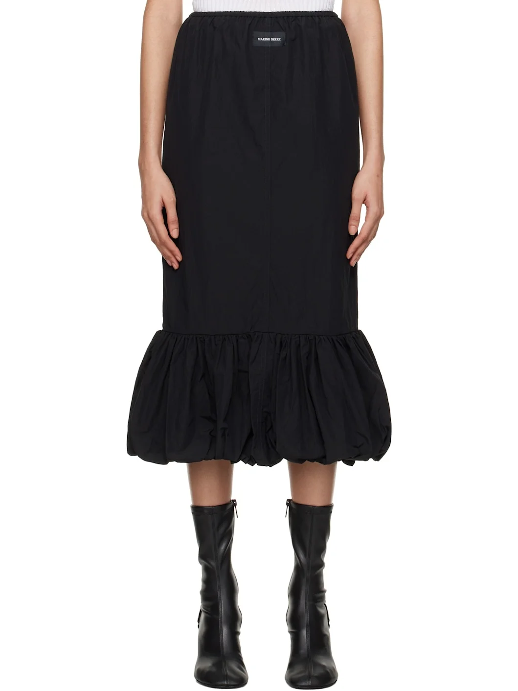 Black Recycled Nylon Mix Bubble Midi Skirt