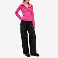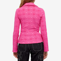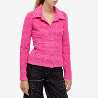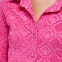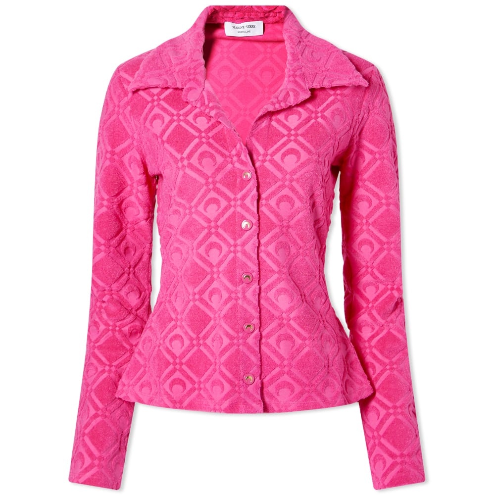 Marine Serre’s intricate and vibrant designs pull from a range of references to crete fashion forward staples with a dedication to sustainability. The Moon Diamant shirt reinterprets one of the brand’s most iconic motifs - the Lozenge print - with its diamond and moon pattern, while its towelling fabric allows for a sporty summer feel. Not to mention its eye-catching fuschia colour palette, which ensures you’re the centre of attention. - 84% Cotton, 14% Nylon, 2% Elastane - Hand Wash Only - Camp Collar - Snap Button Closure - Made in Portugal