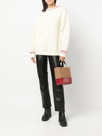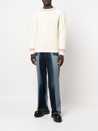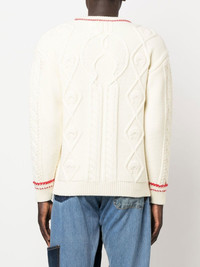 cable-knit wool jumper Crafted in a classic cable-knit wool construction, this jumper by Marine Serre is detailed with contrasting stripes for a sports-inspired touch. Highlights - Beige - Wool - Cable knit - Stripe detailing - Round neck - Long sleeves - Straight hem - When buying this unisex item, keep in mind that it is graded in standard men's sizing. Imported Composition Wool 100% SIZE & FIT Model measurements Height 5 ft 11 in(1.8 m) Bust/Chest 33.07 in(84 cm) Hips 37.4 in(95 cm) Waist 25.19 in(64 cm) FittingInformation This piece is unisex. Please take care when selecting your size Cut for a relaxed fit for both men and women Made with a mid-weight fabric