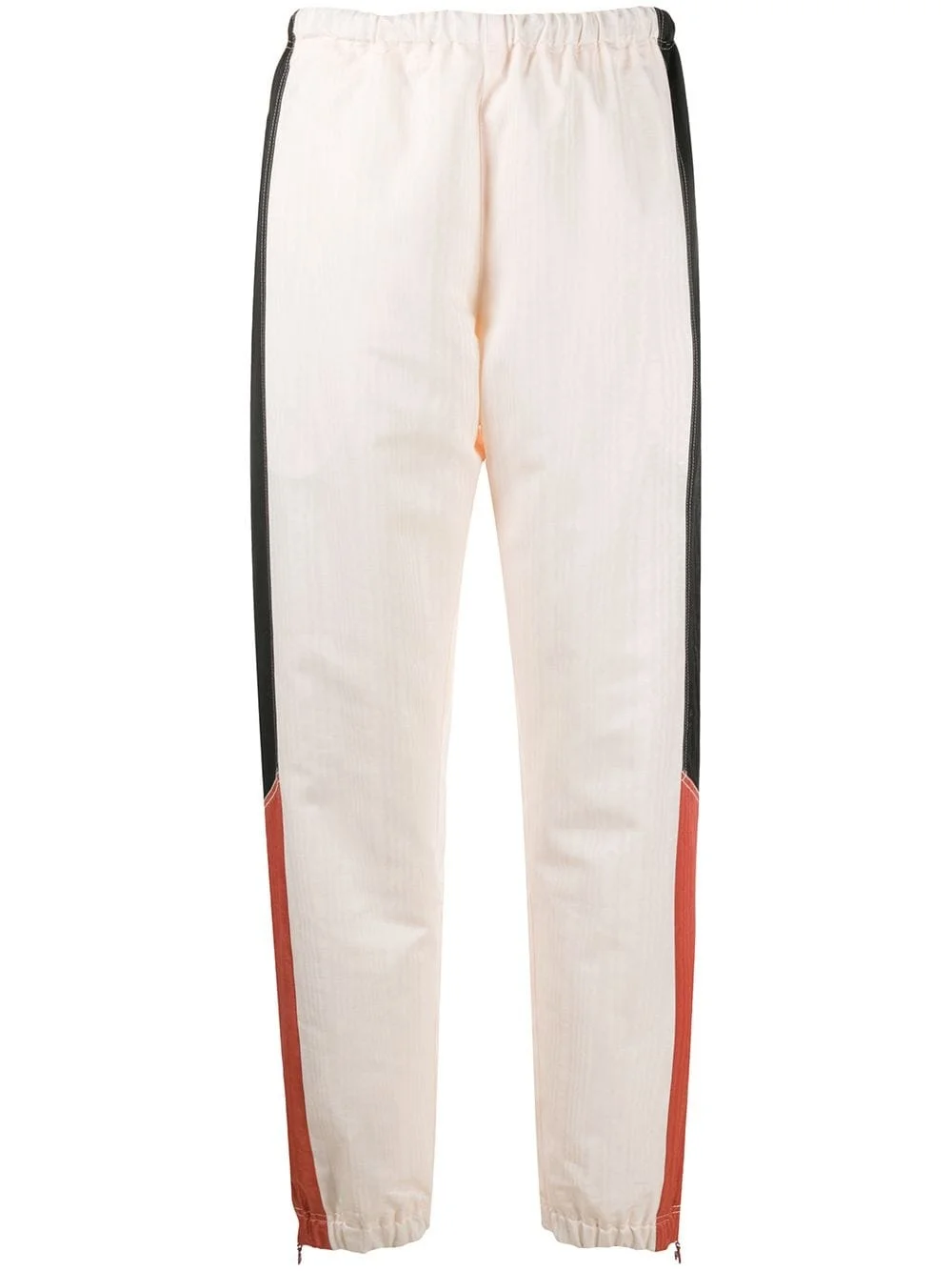contrast panel cuffed trousers Highlights - White - Elasticated waistband - Elasticated cuffs - Contrasting panel detail - Tonal stitching - Ankle-length - Two side zip-fastening pockets Imported Composition Lining: Cotton 100% Outer: Polyester 100% SIZE & FIT Model measurements Height 5 ft 10 in(1.78 m) Bust/Chest 31.49 in(80 cm) Hips 36.22 in(92 cm) Waist 25.59 in(65 cm) Washing instructions Dry Clean Only
