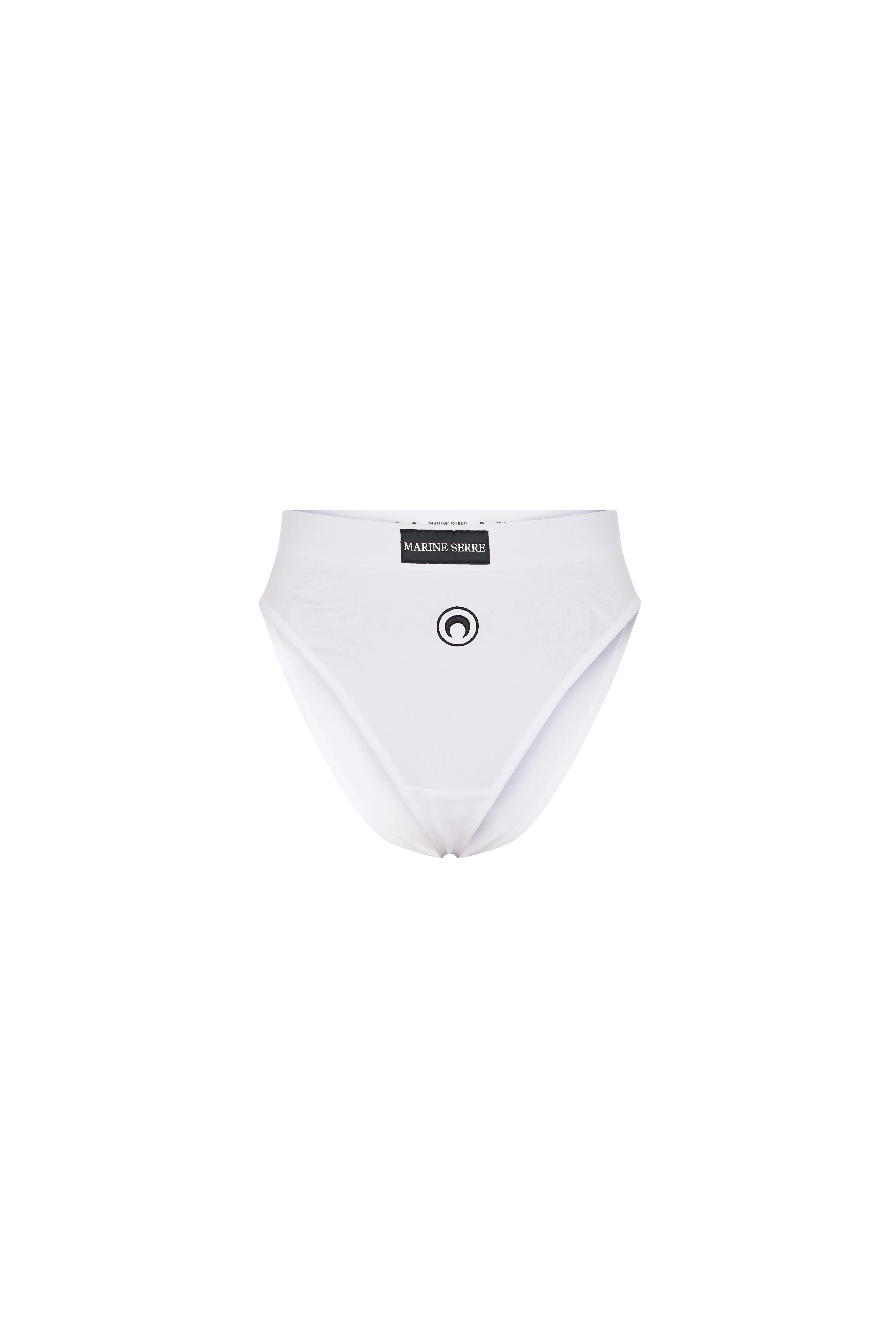 - Stretch fabric - Elastic waistband - Moon logo embroidered under waistband in front - Branded label woven on waistband in front Materials White Organic Cotton All of the cotton that Marine Serre sources for the BORDERLINE collection is certified GOTS (Global Organic Textile Standard). This certification is the worldwide leading textile processing standard for organic fibers and provides credible assurance of responsible manufacturing with the least chemical inputs. In terms of shapes, the House proposes a wide range of everyday styles taken directly from the sportswear universe. 100% Cotton (GOTS Certified)