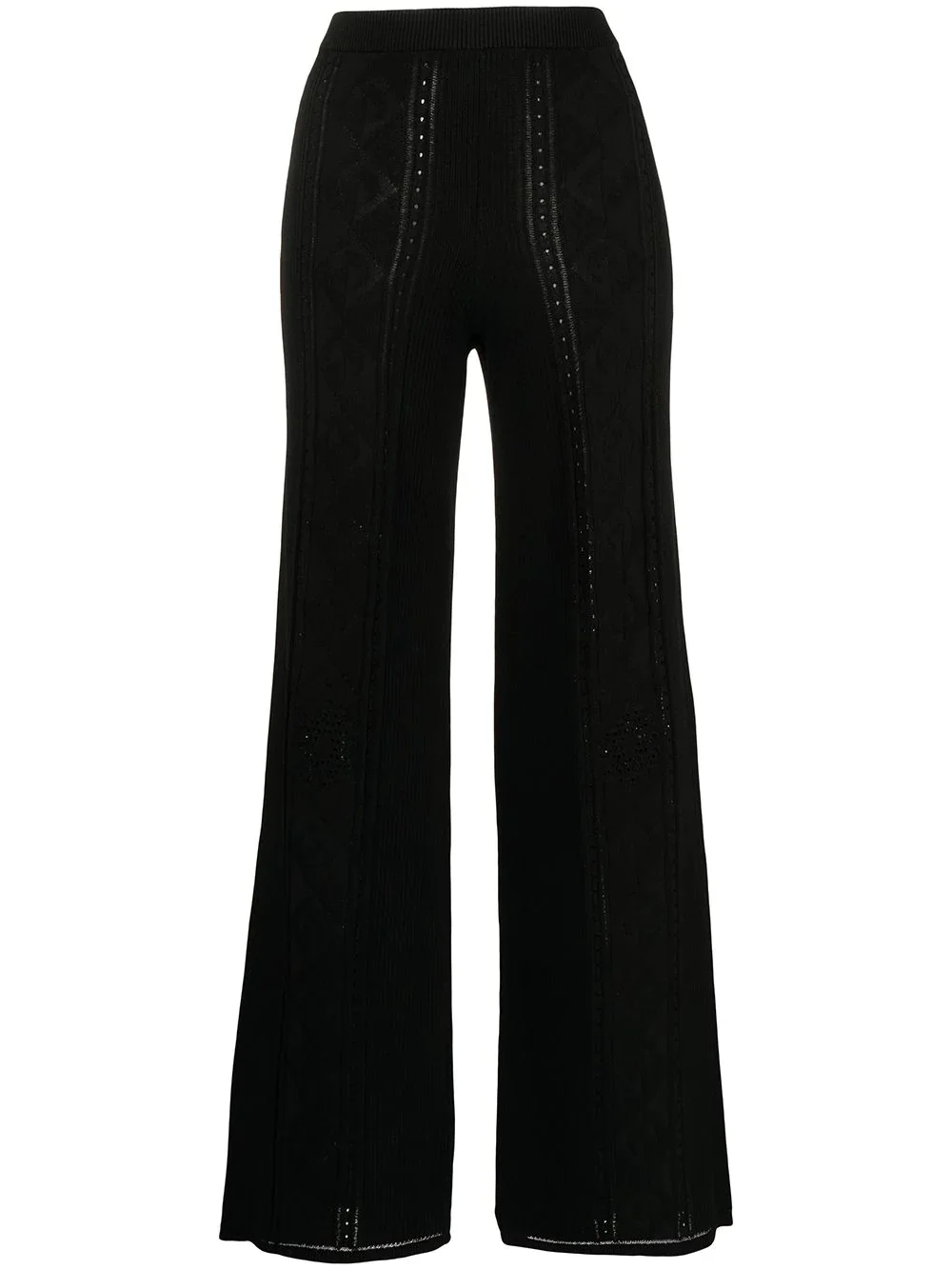 Crescent Moon-pattern wide-leg trousers Described by the brand as an emblem of a 'new progressive fashion era', the Crescent Moon print is a synonym for Marine Serre. Sitting high on the waist, these wide-leg trousers are detailed with a subtle pattern of the label's iconic motif. Imported Composition Body: Viscose 80%, Polyamide 20% SIZE & FIT Model measurements Height 5 ft 10 in(1.79 m) Bust/Chest 31.49 in(80 cm) Hips 35.03 in(89 cm) Waist 24.01 in(61 cm) FittingInformation This piece fits true to size. We recommend you get your regular size Designed to be fitted at the waist, loose over the leg Made with a heavyweight fabric Washing instructions Dry Clean Only