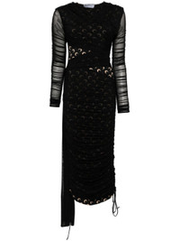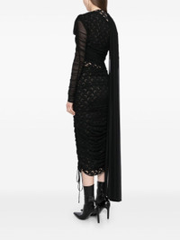 black recycled polyamide blend stretch-design crescent moon print layered design draped design scarf detailing concealed side zip fastening V-neck semi-sheer sleeves asymmetric hem This item is made from at least 50% recycled or upcycled materials. For recycled synthetic clothing products, we highly recommend using a microfibre-catching washing bag to ensure that no microplastics that can pollute water are released in the process. Learn more about what makes a product Conscious on our Conscious Criteria page Size & Fit Model Measurements: Height: 1.77 m Bust/Chest: 73.0 cm Hips: 86.0 cm Waist: 59.0 cm Model wears size 36 Fabric and Care Designer Style ID: WDR286A Designer Colour: BLACK Composition: Recycled polyamide 86%, Recycled polyamide 86%, Elastane 14% Washing instructions: Machine Wash Made in Romania