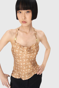 - Bias cut - Adjustable straps with Moon jewelry clip closure in front - Rolled hem Materials Moon Printed Flou Dark Camel 100% Viscose