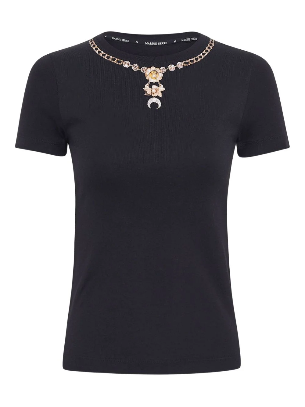 crew neck T-shirt Highlights - Black - Jewel detail - Short sleeves - Round neck Imported Composition Cotton 100% Washing instructions Read Manufacturer Guidelines