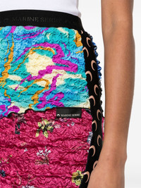 crinkled patchwork skirt Highlights - Black/multicolour - Stretch-design - Patchwork design with floral colour-block print - Crescent moon print - Crinkled finish - Elasticated logo waistband - Lettuce hem - Thigh-length - Unlined Made in France Composition Outer: Polyester 100%, Polyamide 78%, Spandex/Elastane 22% Lining: Polyester 94%, Spandex/Elastane 6% SIZE & FIT Model measurements Height 5 ft 11 in(1.8 m) Bust/Chest 30.7 in(78 cm) Hips 35.03 in(89 cm) Waist 24.4 in(62 cm) FittingInformation This mini-length skirt is intended to be worn high on the waist The elasticated waist allows for a comfortable fit Made from a midweight stretch fabric, this piece offers elasticity and flexibility when worn This piece fits true to size – take your usual size