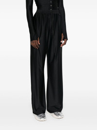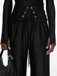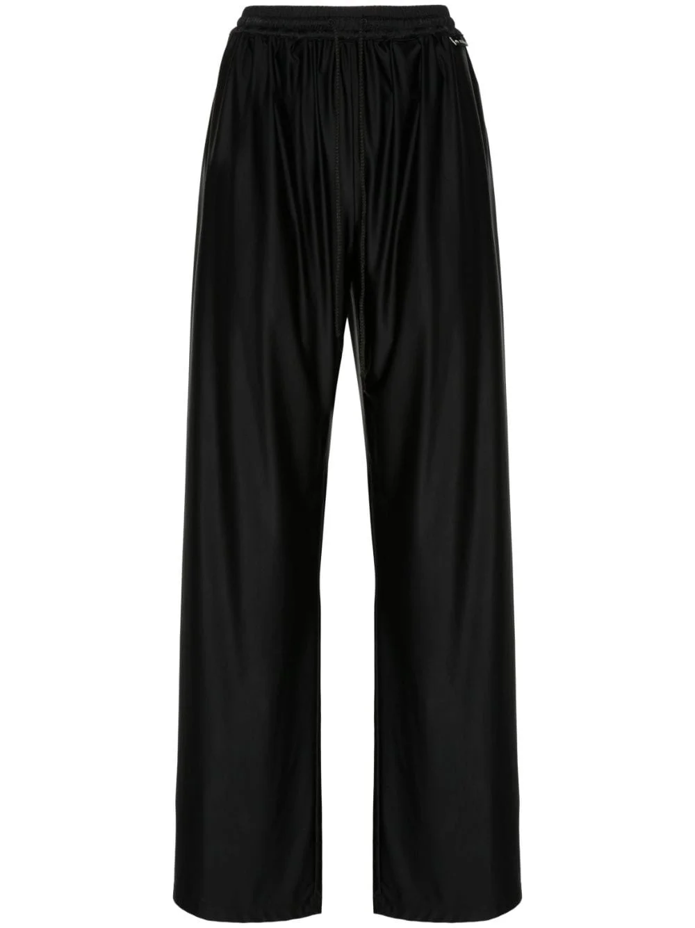 jersey trousers Highlights - Black - Stretch-jersey - Logo tag - Gathered detailing - Elasticated drawstring waistband - Two side inset pockets - Mid-rise - Straight leg - Unlined Imported Composition Polyamide 65%, Spandex/Elastane 35% SIZE & FIT Model measurements Height 5 ft 10 in(1.77 m) Bust/Chest 32.28 in(82 cm) Hips 35.03 in(89 cm) Waist 25.19 in(64 cm) FittingInformation Designed with a wide-leg cut, these trousers allow for a close fit at the waist and offer a loose and roomy fit over the leg The elasticated waist allows for a comfortable fit Made from a midweight stretch fabric, this piece offers elasticity and flexibility when worn This piece fits true to size – take your usual size