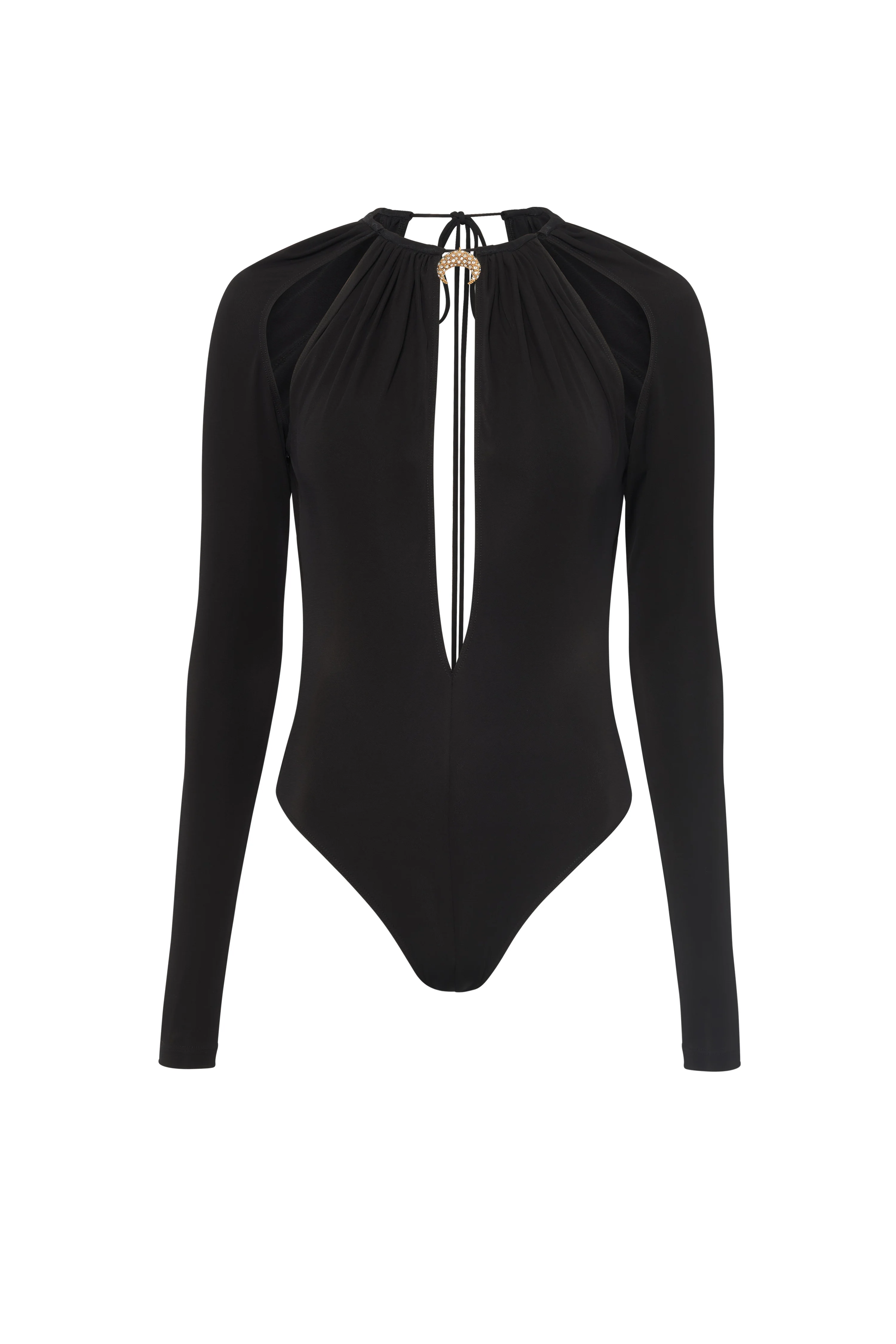 - Plunge neckline - Drawstring tie closure - Raglan sleeves - Moon charm detail - Cutout sleeve design Materials DRAPED JERSEY 95% VISCOSE 5% EA (FSC)