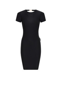 - Moon jewelry clip closure in upper back - Turned hem Materials Black Jersey Drapped 100% polyester
