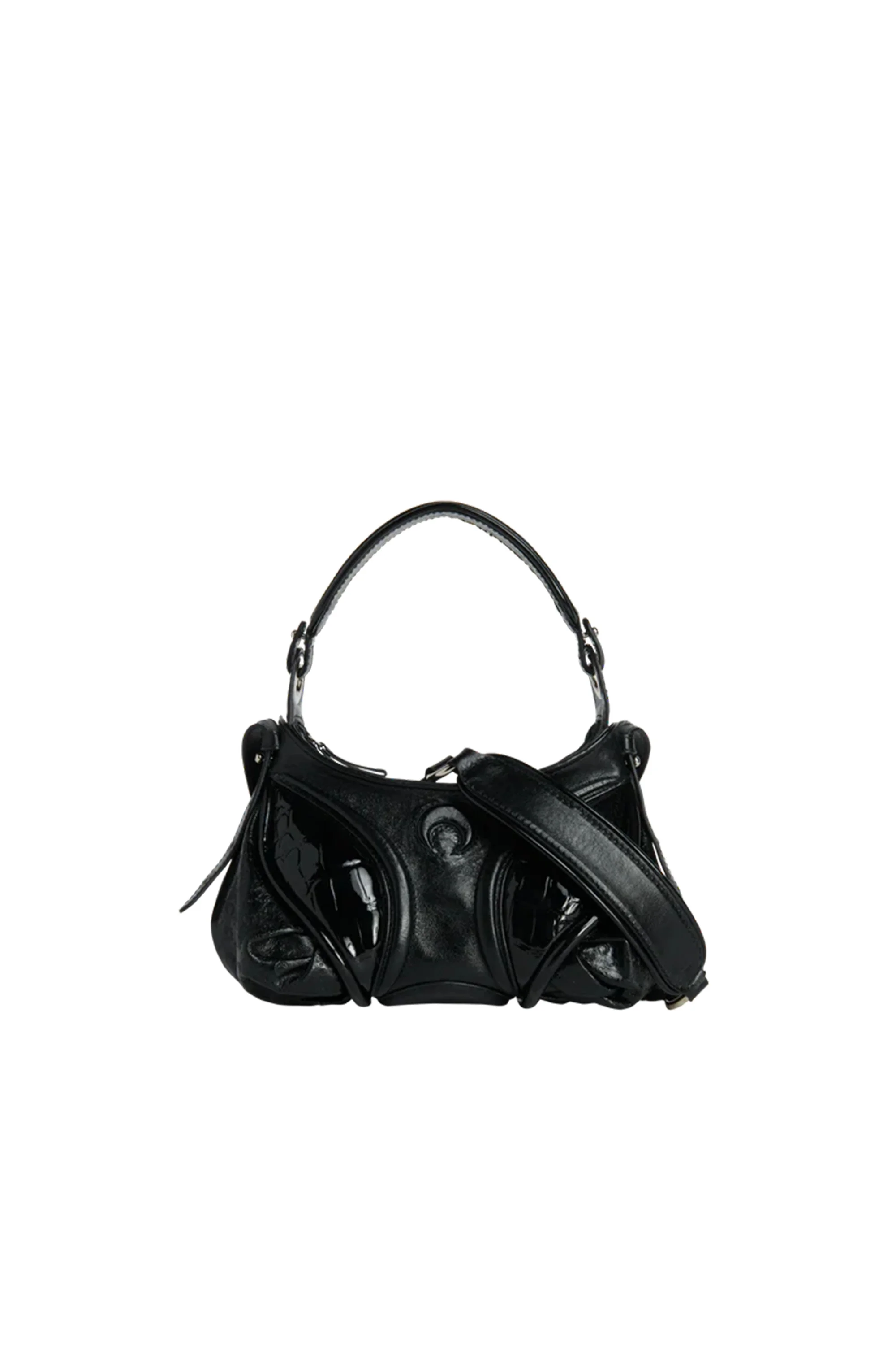- Zipper closure with Moon engraved puller - Interior in Moon jacquard lining, featuring a foiled logo patch - Signature Moon charm assembled on side - 26 x 14 x 11 cm - 14 cm handle drop length - Adjustable shoulder strap : 47 to 58 cm drop length Materials Moonogram Embossed Leather The Moonogram Embossed Leather represents the most refined pieces offered of the collection and has been a House staple dating back to STATE OF SOUL. It is a soft supple lambskin that has undergone metal-free tanning and has then been embossed with our emblematic Moonogram motif. 100% Lambskin