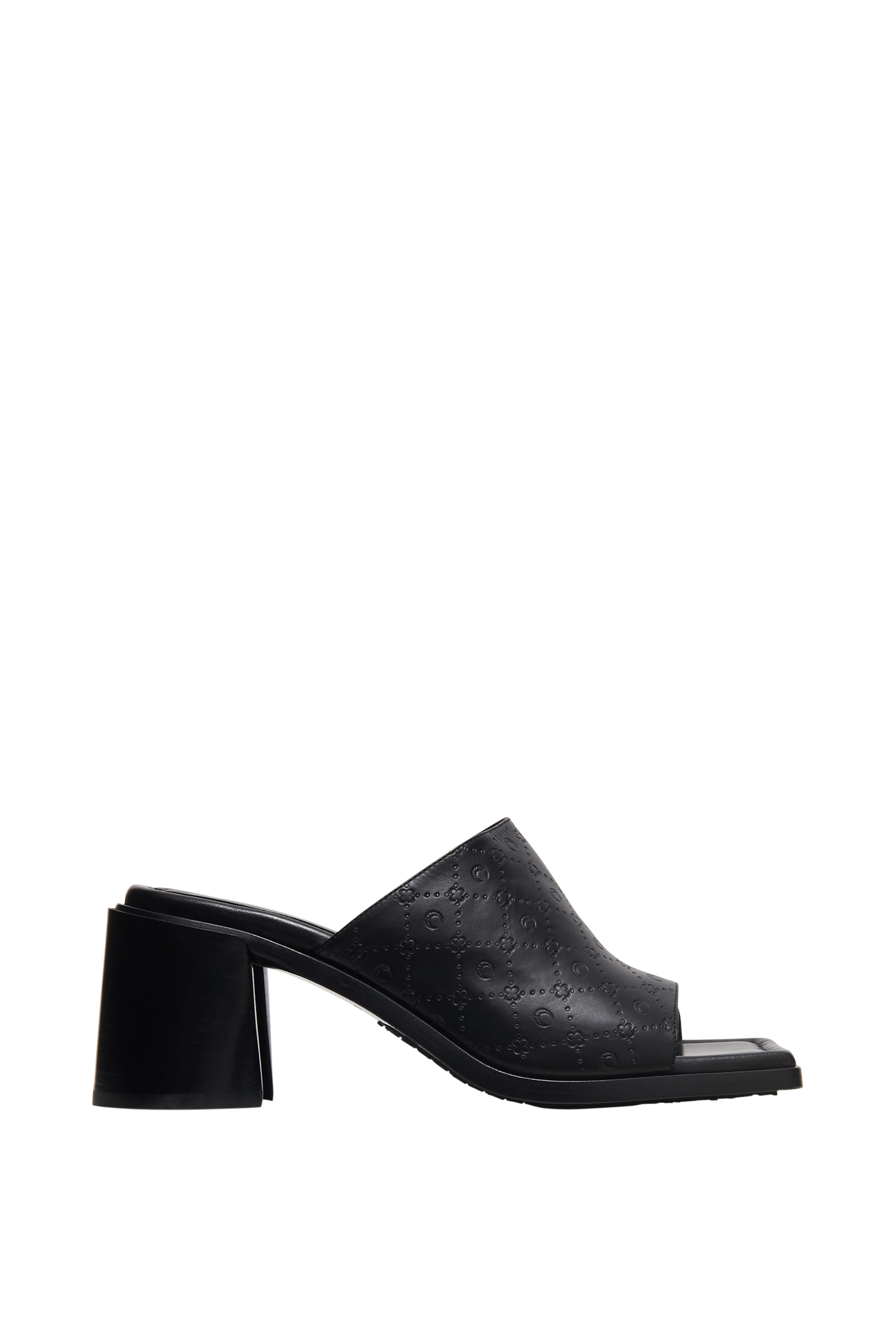 Moon shaped stacked heel Padded insole Handstitched rubber inserted sole Materials Black Embossed Leather Over the years, Serre has learned to master deadstock leather, favoring it as one of the cornerstone materials of the house. The embossed Moonogram pattern reinforces the branded look. 100% Sheep Leather