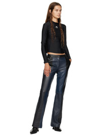 Buffed sheepskin pants. Graphic pattern throughout. · Paneled construction · Belt loops · Two-pocket styling · Zip-fly · Logo hardware at back waistband · Full satin lining · Contrast stitching in white Supplier color: Blue