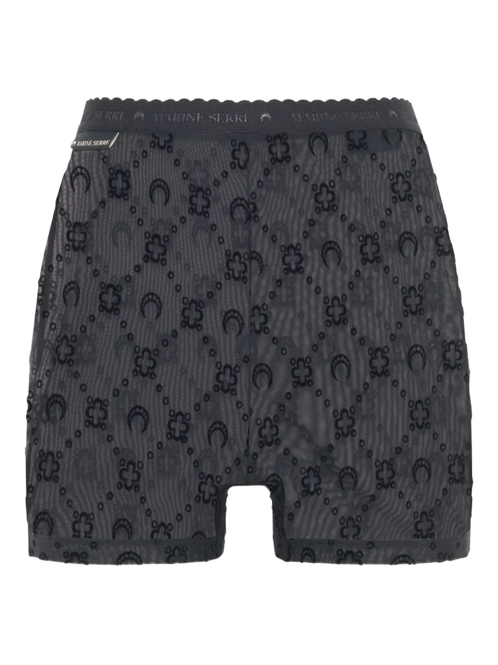 flock-print mesh shorts Highlights - Black - Mesh - Flock print - Elasticated waist - Logo detail Made in France Composition Recycled Polyamide 86%, Elastane 14% Washing instructions Read Manufacturer Guidelines