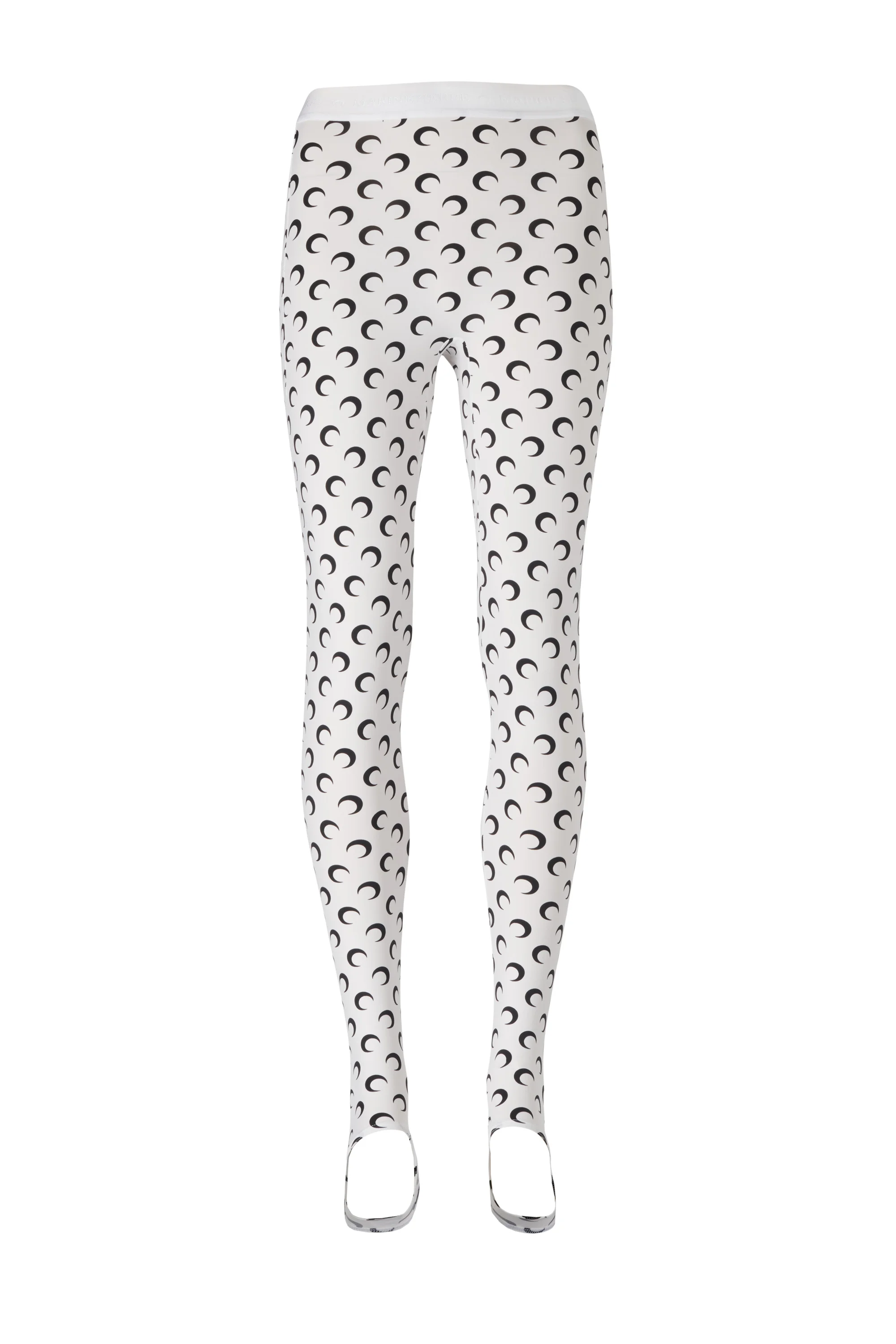 - Elastic waistband - Stirrups - Moon print allover - Logo stamped on waistband Materials All Over Moon Jersey White The All Over Moon print is the banner of the House, it represents the house’s virtues and vision of Futurewear, ever present since the very beginning of the House for RADICAL CALL FOR LOVE. Indeed, what is perhaps the House’s most popular line holds its values at heart with a jersey composed entirely of recycled material. 88% Recycled Polyamide (GRS Certified), 12% Recycled Elastane