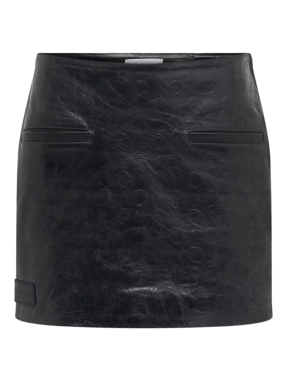 Glossy Moon leather skirt Highlights - Black - Embossed moon motif - Glossy finish - High waist - Jetted pockets - Straight hem Made in Italy Composition Sheepskin 100% SIZE & FIT Measurement WAIST 32.28 in(82 cm) HIPS 38.97 in(99 cm) Washing instructions Read Manufacturer Guidelines