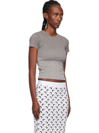 Rib-knit organic cotton- and recycled cotton-blend T-shirt. · Fading and printed logo pattern throughout · Crewneck · Logo patch at back collar Supplier color: Moon faded jersey dark grey 50% organic cotton, 50% recycled cotton. Made in Portugal 252020F110049