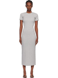 Rib-knit stretch organic cotton maxi dress. · Crewneck · Logo embroidered at chest · Logo patch at back collar Supplier color: Grey 95% organic cotton, 5% elastane. Made in Turkey 252020F055001