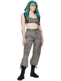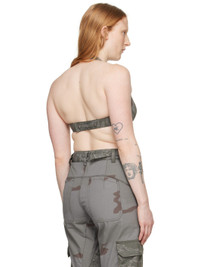 Upcycled polyester- and cotton-blend ripstop bra. Camouflage pattern printed throughout. · Paneled construction · Adjustable press-stud halter strap at square neck · Underwire at cups · Adjustable press-stud fastening at back · Logo-engraved gunmetal-tone hardware Supplier color: Dark grey Body: 64.5% polyester, 33% cotton, 2.5% viscose. Body 2: 69% viscose, 31% cotton. Made in Bulgaria 241020F111010