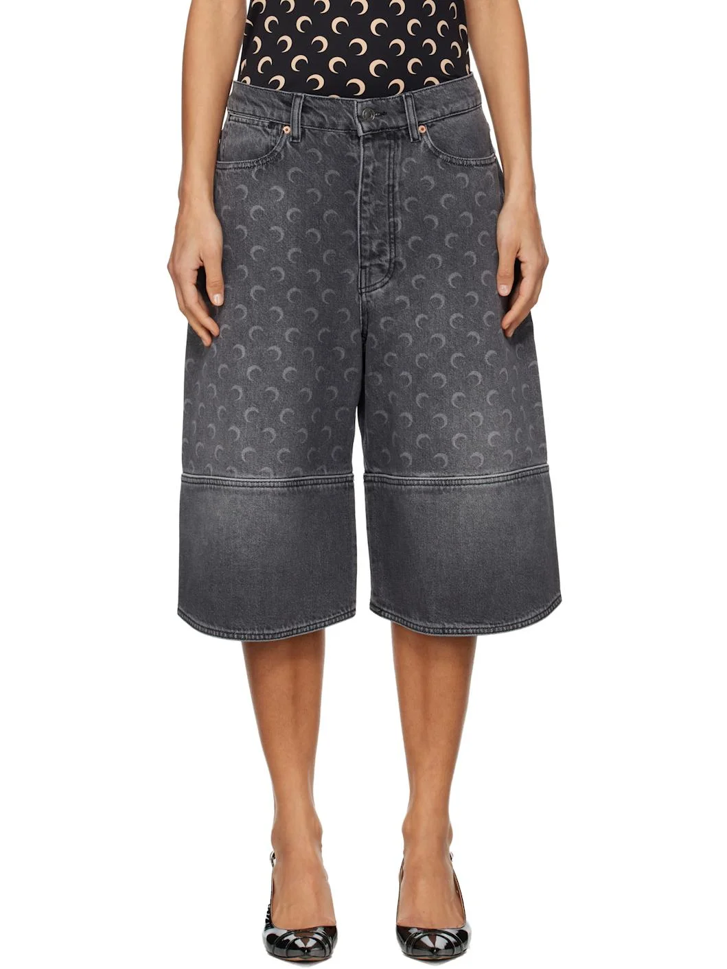 Non-stretch denim shorts. · Laser-printed logo pattern and fading throughout · Straight-leg · Mid-rise · Belt loops · Five-pocket styling · Button fly · Jacron logo patch at back waistband · Logo-engraved silver- and copper-tone hardware Supplier color: Moon laser grey denim 100% cotton. Made in Turkey 252020F088010