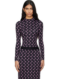 Stretch recycled nylon jersey T-shirt. · Logo pattern printed throughout · Mock neck · Raw edge at hem and cuffs Supplier color: Black/Pink 88% recycled polyamide, 12% recycled elastane. Made in Portugal 252020F110041