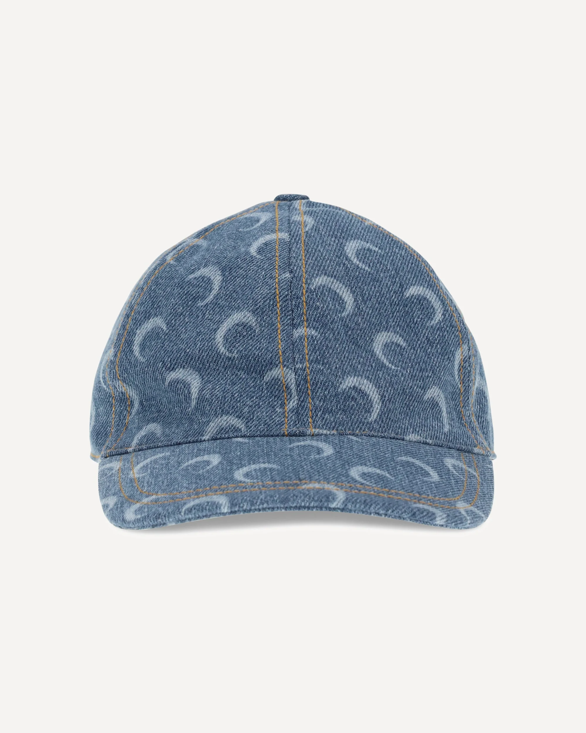 Moon Laser Denim Baseball Hat by Marine Serre is made of denim with an all-over moon pattern obtained by laser processing. Equipped with a cotton lining, it features an adjustable Velcro strap with buckle and a logo label sewn on the inside. A distinctive accessory with an urban and contemporary style. DETAILS - Sku: UHG048ACDEN0002_BL05 - Season: AW25 - Composition: GENERAL 100% Cotton - MADE IN BULGARIA