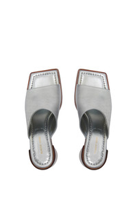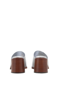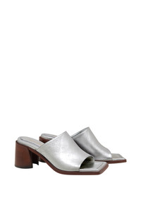 Stacked heel Padded insole Handstitched rubber inserted sole Materials Embossed Leather Silver 100% Lamb Skin
