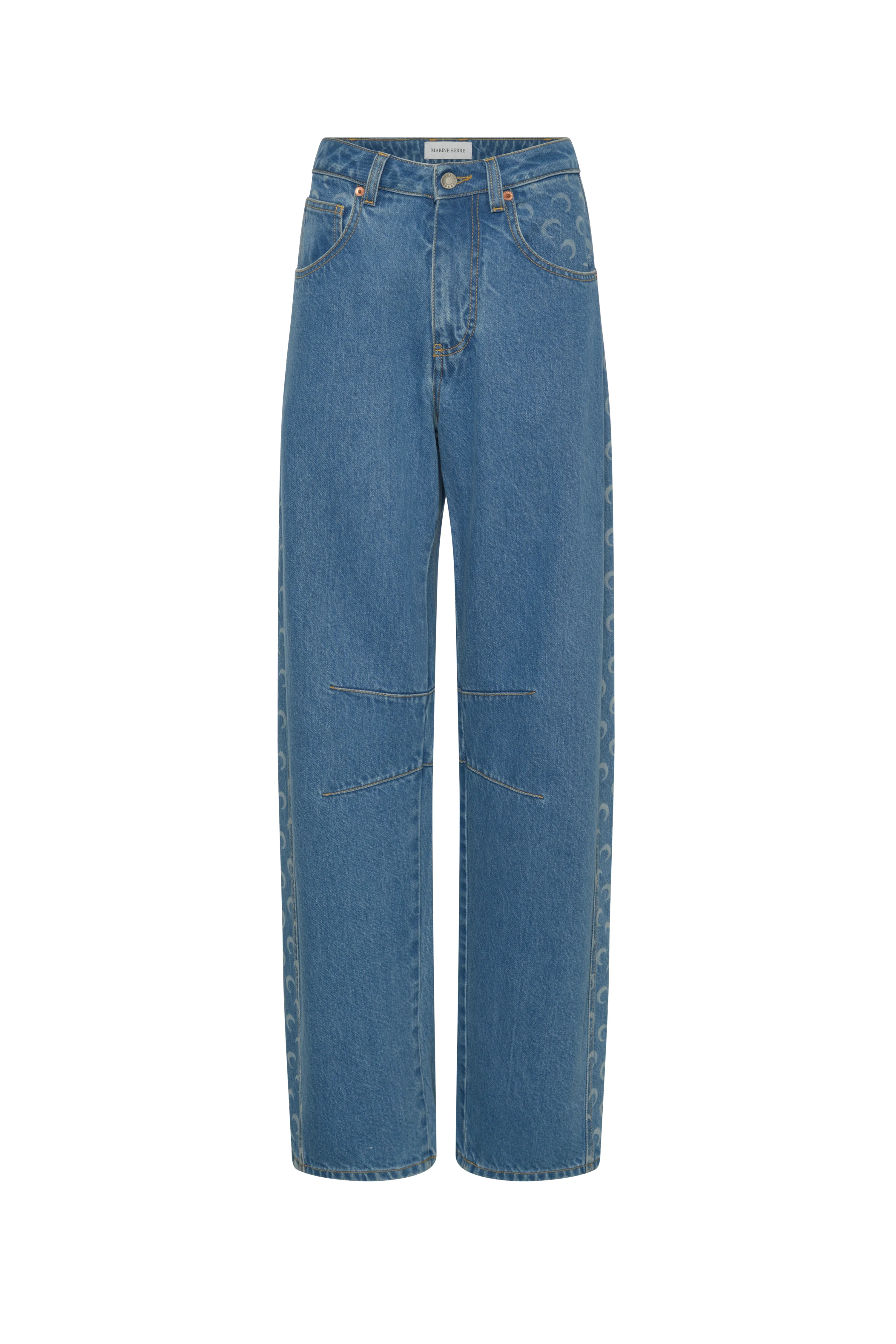 Medium-waisted regular barrel jeans Product Detail - Zipper and button - 5 Pockets jean - Belt loops - Cotton twill pocket bag - Marine Serre leather patch Composition and Traceability Product details page relating to environmental qualities or characteristics WPA174A CDEN0002 BL05 LIGHT BLUE Composition: - Base Material: 100% Cotton Issued from organic farming If organic and has a certification: GOTS Care Instructions: Machine wash at 30°C with precaution and without spinning Do not bleach Low temperature iron on reverse side Dry clean with precaution Do not tumble dry Traceability: - Weaving/Knitting: Turkey - Dyeing: Turkey - Manufacturing: Turkey
