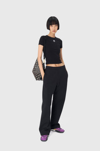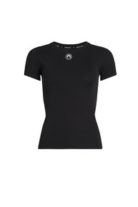 - Ribbed neckline - Moon logo embroidered under neck in front - Branded label woven under neck in back Materials Black Organic Cotton All of the cotton that Marine Serre sources for the BORDERLINE collection is certified GOTS (Global Organic Textile Standard). This certification is the worldwide leading textile processing standard for organic fibers and provides credible assurance of responsible manufacturing with the least chemical inputs. In terms of shapes, the House proposes a wide range of everyday styles taken directly from the sportswear universe. 95% Organic Cotton, 5% Elastane