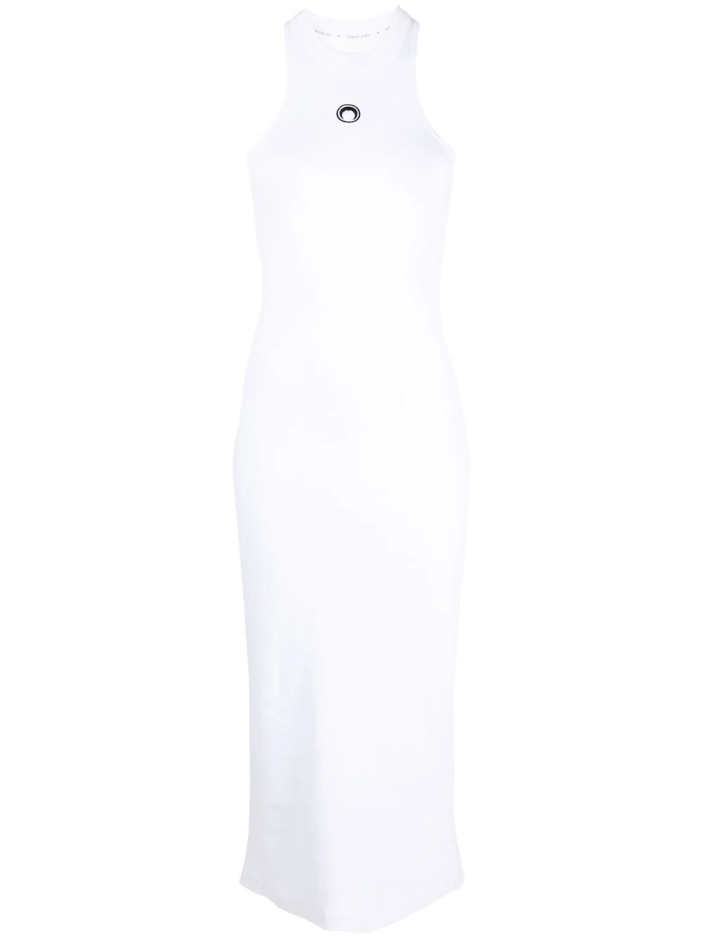 logo-print sleeveless dress Crafted from organic cotton and recycled viscose, this Marine Serre dress offers casual minimalism. In contrasting black and white hues, it is simply detailed with small logos for a subtle take on branding. Highlights - White - Organic cotton - Logo print to the front - Round neck - Sleeveless Imported Composition Organic Cotton 100%, Recycled Viscose 100% Washing instructions Dry Clean Only