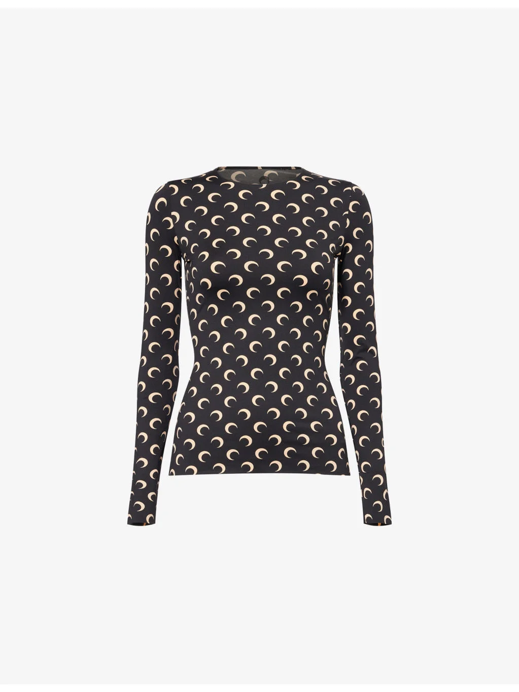 PRODUCT DETAILS - Marine Serre stretch-jersey top - 84% polyamide, 16% elastane - Regular fit, round neck, long sleeves, all-over logo print - Machine wash at 30°C - Made in Portugal - True to size - Model is 5ft 10in/1.78m and wears a size small - Lightweight, stretchy Ref: R04587921