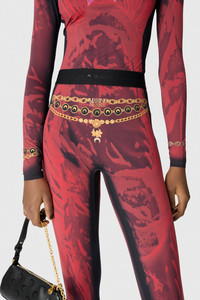 Second skin medium-waisted ankle length leggings Product Detail - Elasticated waistband - Branding integrated in the print Composition and Traceability Product details page relating to environmental qualities or characteristics WPA043A_CJER0085_RD11_RIBBON_RED Composition: 88% Polyamide , 12% Elastane Product Care: Machine Wash 30° Traceability: Weaving, Dyeing: Italy Manufacturing: Portugal