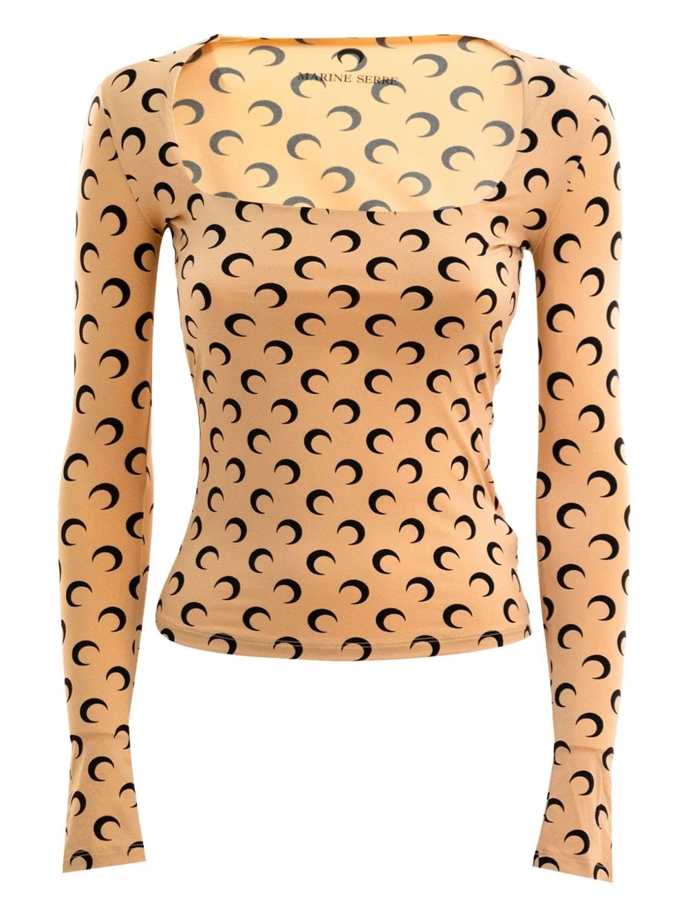 Moon-print long-sleeve T-shirt Highlights - Beige - Crescent moon print - Square neck - Long sleeves Imported Composition Recycled Polyamide 88%, Recycled Spandex 12% Washing instructions Read Manufacturer Guidelines
