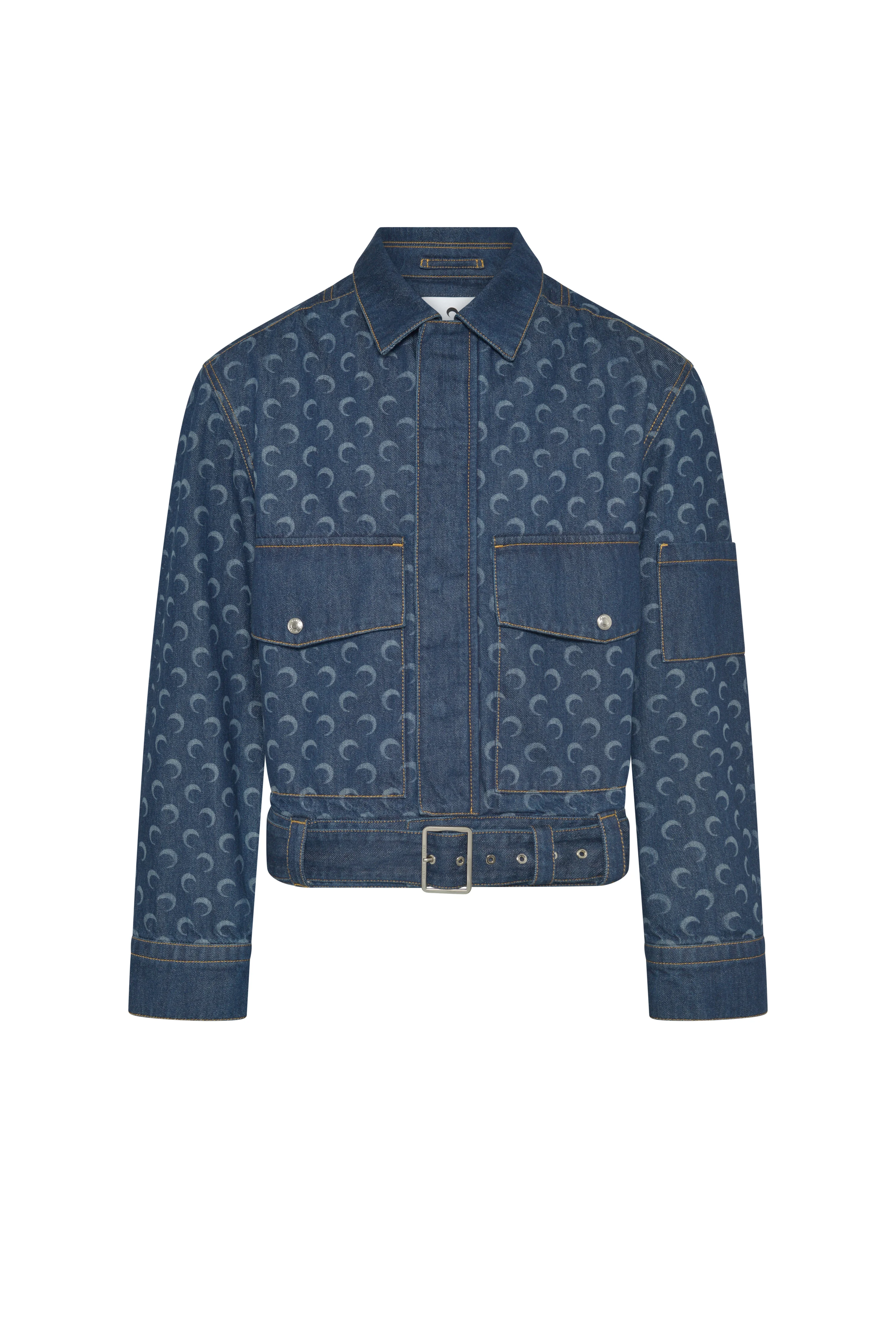 Relaxed fit denim trucker jacket with belt and shirt collar Product Detail - Shirt collar - Zipper and snap button - Applied flap pocket on lower front with opening on top - Set-in sleeve - Snap buttoned sleeve cuff - Amovible belt - Marine Serre leather patch - Small pocket on upper left sleeve Composition and Traceability Product details page relating to environmental qualities or characteristics UJA088A RDEN0002 BL80 MIDNIGHT BLUE Composition: - Main Fabric: 100% Cotton Care Instructions: Do not machine wash Do not bleach Low temperature iron on reverse side Dry clean with precaution Do not tumble dry Traceability: - Weaving/Knitting: Turkey - Dyeing: Turkey - Manufacturing: Turkey