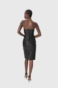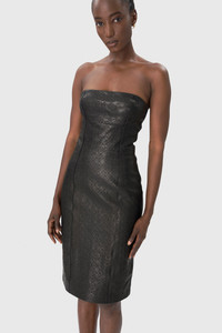 - Signature Moonogram embossed leather all over - Zip closure in back with hook and signature Moon puller - Signature Moon jacquard lining Materials Moonogram Embossed Leather A staple of Marine Serre Couture, this premium sheepskin leather is made in Italy and has a satin sheen that naturally gives off light, as though it has already acquired a delicate patina over time. The grained, structured leather is then heat-embossed to reveal the house’s Moonogram print. The pieces in this range draw inspiration from classic tailoring codes, which merge seamlessly with Marine Serre’s resolutely contemporary vision: women’s styles, from fitted coats and jackets, to a glamorous bustier dress, are fitted to follow the curves of the body. The men’s pieces are modern and luxurious wardrobe staples. 100% Lambskin