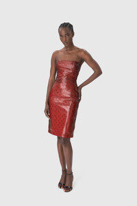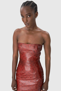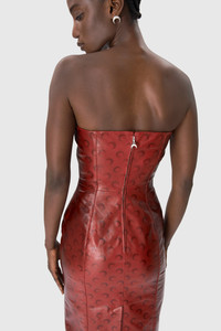 - Signature Moon airbrushed all over leather - Zip closure in back with hook and signature Moon puller - Signature Moon jacquard lining Materials Moon Airbrushed Leather Premium Nappa leather which is made in Italy, and known for its soft and supple qualities, making it ideal in the summer months. During the embellishment stage, garments are airbrushed to reveal our All Over Moon Gradient print, which is set off by the richly dramatic camel, lilac and red palette of the garments. The intensity of the shading varies across each piece, creating a striking chiaroscuro effect that adds depth, dimension and a shimmering, mercurial quality that’s very much in keeping with the house’s lunar codes. Main Material: 100% Sheep Leather Lining: 100% Viscose