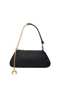 Small clutch bag Product Detail - Zippered closure - Signature moon jacquard lining - Marine serre leather patch - 26 X 12.5 x 5 cm - Handle Height : 22cm Composition and Traceability Product details page relating to environmental qualities or characteristics WSB001A_RWOV0040_BK99_BLACK Composition: BASE MATERIAL: 63% POLYURETHANE, 23% POLYESTER, 14% COTTON - SECOND MATERIAL: 100% COW SKIN - LINING: 100% POLYESTER Traceability: Assembly, Finishing: Italy