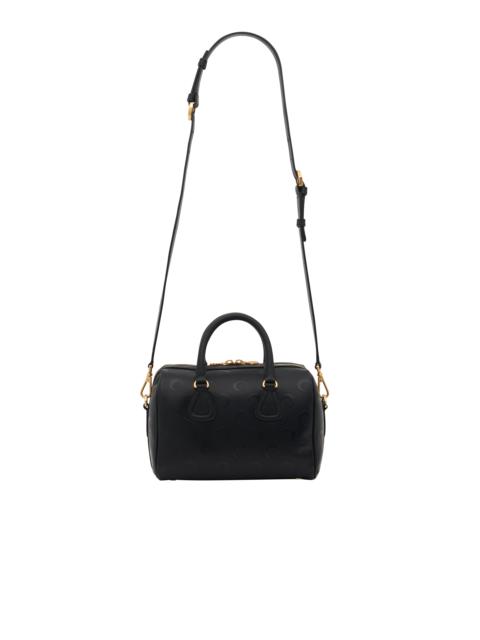 Small shoulder bag Product Detail - Zippered closure - Signature moon jacquard lining - Marine serre leather patch - 22 X 14 x 8 cm - Adjustable handle : 14 to 25 cm drop length Composition and Traceability Product details page relating to environmental qualities or characteristics WBA002A_RWOV0040_BK99_BLACK Composition: BASE MATERIAL: 63% POLYURETHANE, 23% POLYESTER, 14% COTTON - SECOND MATERIAL: 100% COW SKIN - LINING: 100% POLYESTER Traceability: Assembly, Finishing: Italy