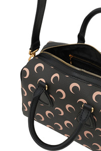 Crossbody bag inspired from the iconic shape of a bowling bag Product Detail - Moon printed canvas exterior - Leather top handle attached with Moon and logo engraved hooks - Double zipper closure with Moon engraved puller - Interior in Moon jacquard lining, featuring an inside pocket, and a foiled logo patch - 24 x 17 x 15 cm - 7 cm handle drop length - Adjustable shoulder strap : 45 to 60 cm drop length Composition and Traceability Product details page relating to environmental qualities or characteristics WBA019A RWOV0030 IT99 INVERSE TAN Composition: BASE MATERIAL: 63% POLYURETHANE, 23% POLYESTER, 14% COTTON - SECOND MATERIAL: 100% COW SKIN - LINING: 100% POLYESTER Product Care: TO CARE FOR THIS PRODUCT, WIPE WITH SOFT DRY CLOTH PROFESSIONAL CLEANING ONLY STUFF WITH TISSUE PAPER TO PRESERVE ORIGINAL SHAPE Traceability: Assembly, Finishing: Italy