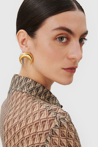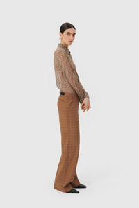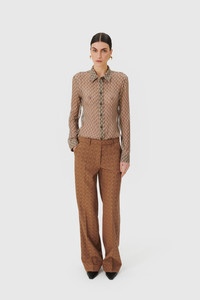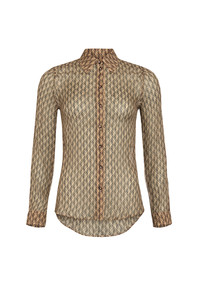 Crafted from high quality 100% silk, this long sleeve button-up shirt features a 70s collar and a fitted back with darts. It is adorned with topstitched beige thick thread for added style. Materials Moon Diamant silk crepon This lightweight and textured fabric offers a soft and flowing drape, perfect for creating graceful designs. It is adorned with moons shaped in diamonds, one of the striking motifs from the MARINE SERRE collections. 100% Silk
