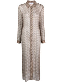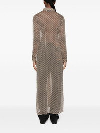 Moon Diamant silk shirt dress Marine Serre boasts house codes with this Moon Diamant dress. Made from silk, it's adorned with a pattern that depicts the brand’s crescent moon logo framed with a geometric motif. Highlights - Beige - Silk - Semi-sheer construction - Classic collar - Monogram print - Front button fastening - Long sleeves - Ankle-length - Straight hem Imported Composition Silk 100% SIZE & FIT Model measurements Height 5 ft 10 in(1.77 m) Bust/Chest 34.64 in(88 cm) Hips 35.43 in(90 cm) Waist 24.8 in(63 cm) FittingInformation Designed to be unstructured, offering a loose fit throughout Made from a lightweight non-stretch fabric This piece fits true to size – take your usual size Washing instructions Dry Clean Only