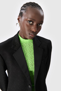 - Extra long sleeves with thumb holes - Moon diamond jacquard allover - Label with logo on side seam Materials Moon Diamond Mesh Jacquard Green The Moon Diamond is one of the most iconic prints of the House. This semi transparency calls back to Marine Serre’s transgressive vision by having a material traditionally used solely for lingerie reimagined as day-to-day wear. 70% Polyamides, 30% ROICA