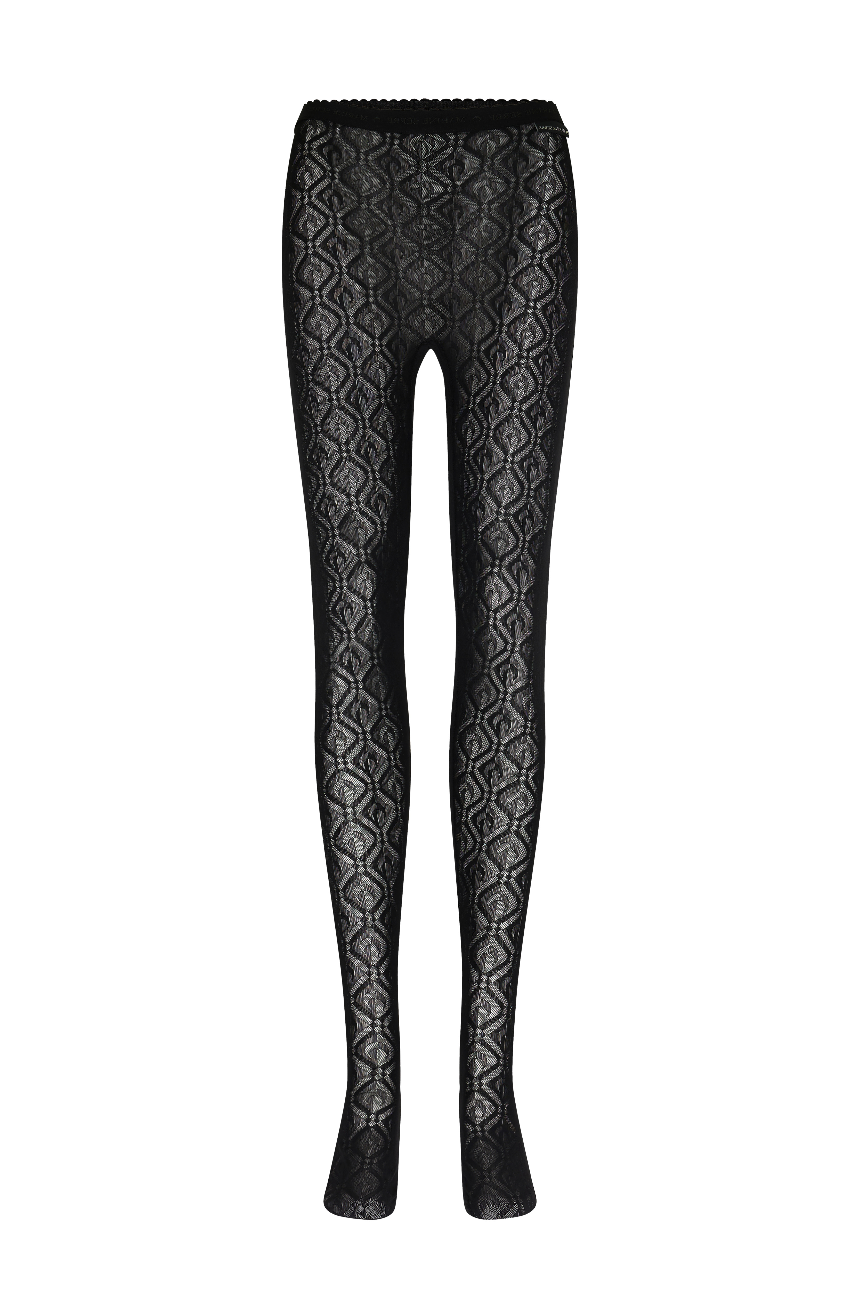 - MARINE SERRE branded elastic band - MARINE SERRE Borderline label near left side seam - Gusset Materials Moon Diamant Mesh Jacquard This fabric, crafted from a biodegradable mesh blend and adorned with elegant Moon Diamant motifs throughout, adds a sheer, sensual layer. 70% Polyamide, 30% ROICA