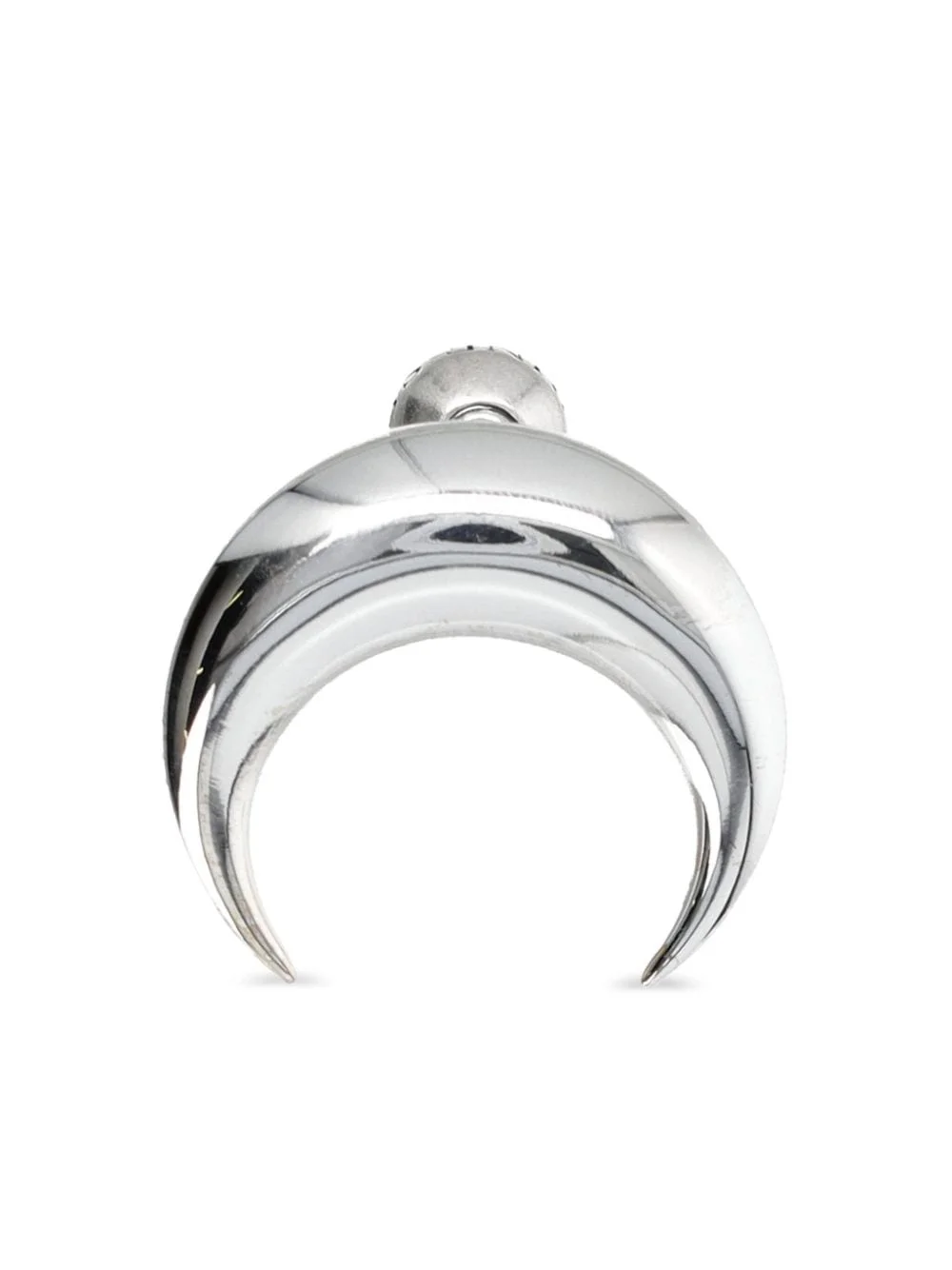 Moon earring Highlights - Silver-tone - Brass - Crescent moon pendant - Polished finish - Engraved logo - For pierced ears - This is a single earring. Imported